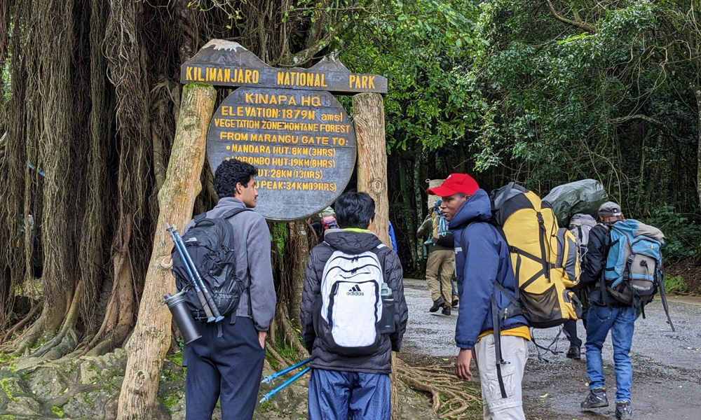 Your adventure begins early in the morning with a pick-up from your hotel in Moshi or Arusha. You will drive for about one hour from Moshi (or about two hours from Arusha) to Marangu Gate, the main entrance of Kilimanjaro National Park.